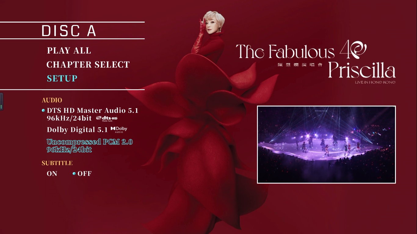 - 光盘标签:陈慧娴 The Fabulous 40 Priscilla Live in Hong Kong 2025 1080i AVC DTS-HDMA 5.1