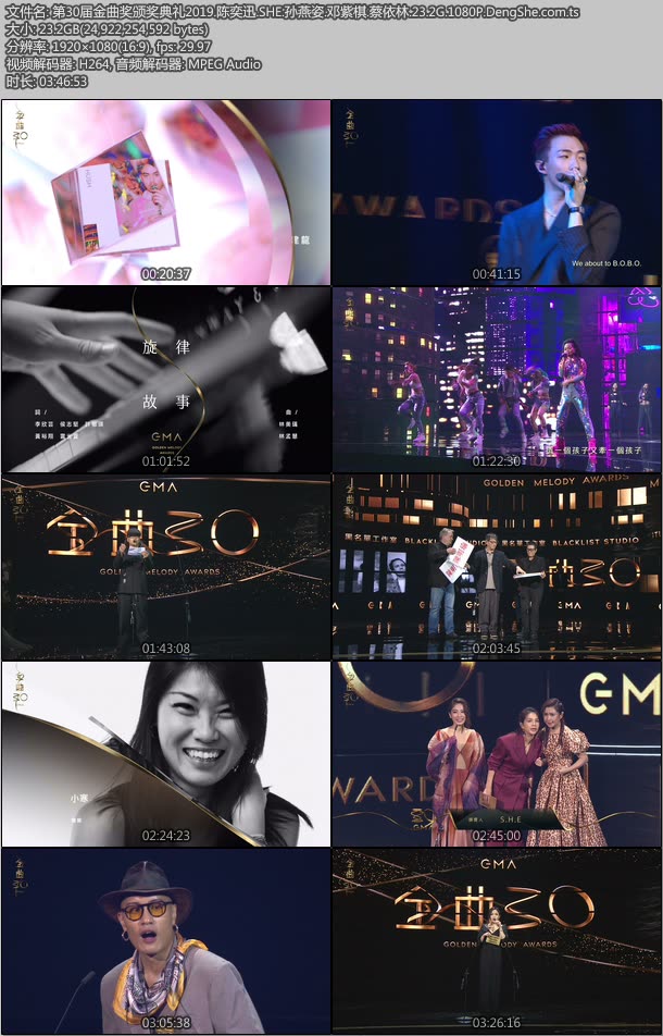 完整名称 : G:\848.DengShe.com\第30届金曲奖颁奖典礼2019.陈奕迅.SHE.孙燕姿.邓紫棋.蔡依林.23.2G.1080P.DengShe.com.ts